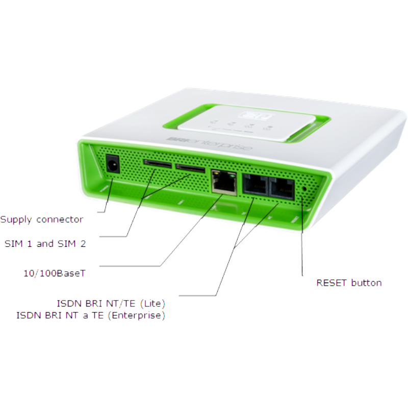 BRI GW s GSM a Ethernet rozhraním. Pre podporu prenosu hlasu VoIP pre 4 hovorové kanály je nutné zakúpiť licenciu 50208940E.