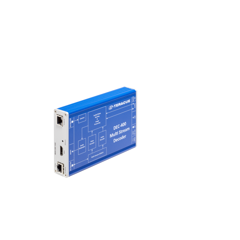 Séria dekodérov DEC-400 je náprotivkom spoločnosti Teracue k sérii dekodérov ENC-400. Ide o live stream dekodéry H.264, MPEG-2-SD/HD, NDI® a IPTV pre HDMI alebo HDSDI. Kombinácia vysokého výkonu a jednoduchosti umožňuje užívateľovi rýchle nastavenie so spoľahlivým výkonom. DEC-400-HDMI a DEC-400-HDSDI sú navrhnuté pre 19" inštaláciu, profesionálne 24/7 použitie. DEC-400-HDMI je k dispozícii aj ako kompaktné samostatné zariadenie.